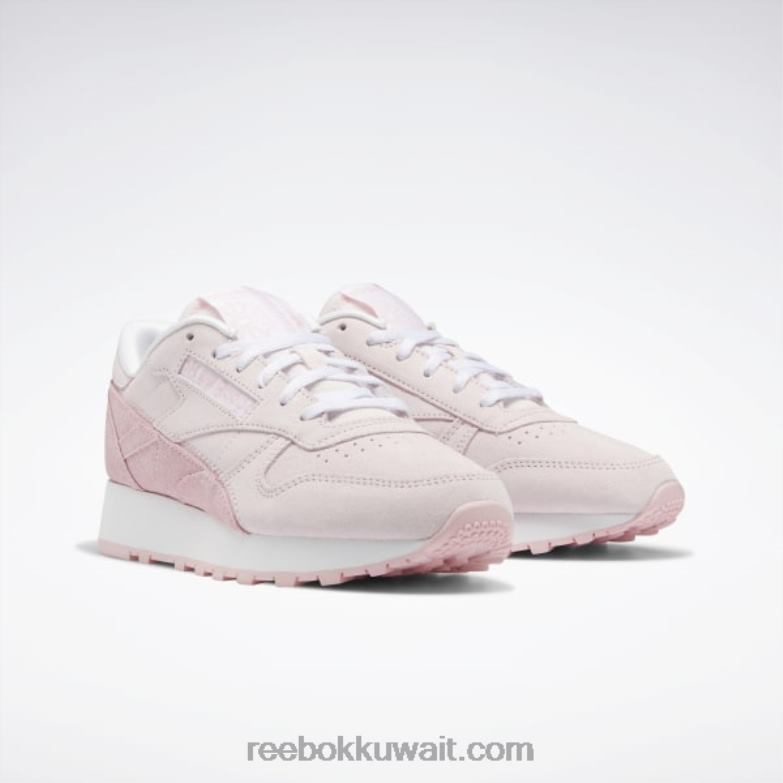 بورسلين وردي / وردي توهج / أبيض فاتح أحذية نسائية جلدية كلاسيكية Reebok 0NZ0F205
