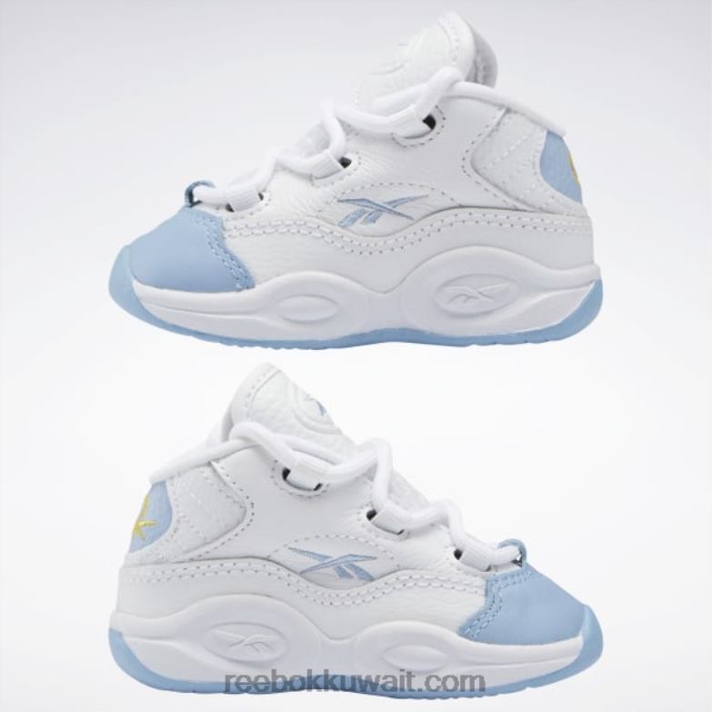 أطفال أبيض ftwr / أزرق سائل / أصفر سام سؤال منتصف أحذية كرة السلة - طفل صغير Reebok 0NZ0F1380
