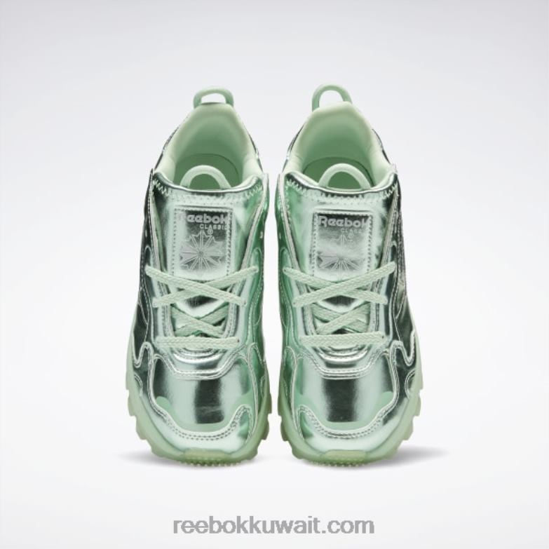 أطفال نصف بكسل النعناع / الفضة التقى. كاردي بي حذاء جلدي كلاسيكي - مدرسة ابتدائية Reebok 0NZ0F1455