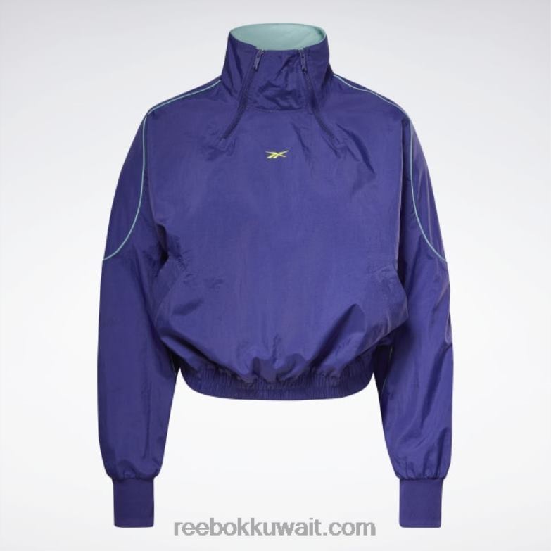 تبدو مصقولة وتجميعها في طريقك إلى فصل لي ميلز المفضل لديك في غطاء ريبوك النسائي هذا. تضيف الخياطة المتعرجة المزخرفة زخرفة أنيقة على القماش المنسوج. رقبة عالية بربع سحاب يتيح لك ضبط التغطية.