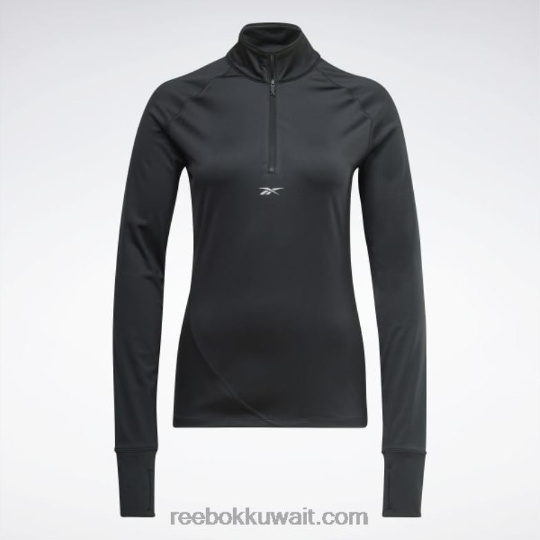 نحيف أسود الليل تشغيل قميص من النوع الثقيل بسحاب Reebok 0NZ0F740