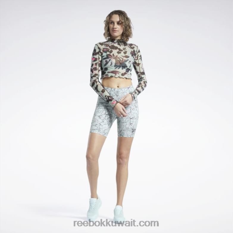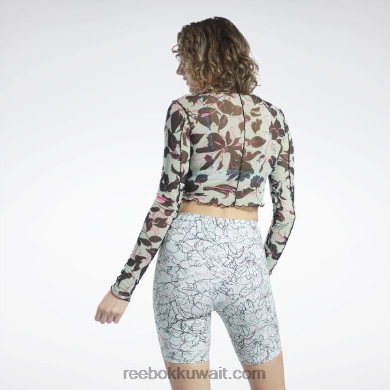 نحيف حكيم خفيف قميص شبكي بأكمام طويلة وطبعة أزهار كلاسيكية Reebok 0NZ0F750
