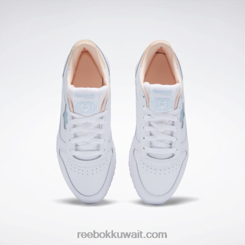 أبيض ftwr / أزرق لؤلؤي / برتقالي هالة أحذية نسائية جلدية كلاسيكية Reebok 0NZ0F424