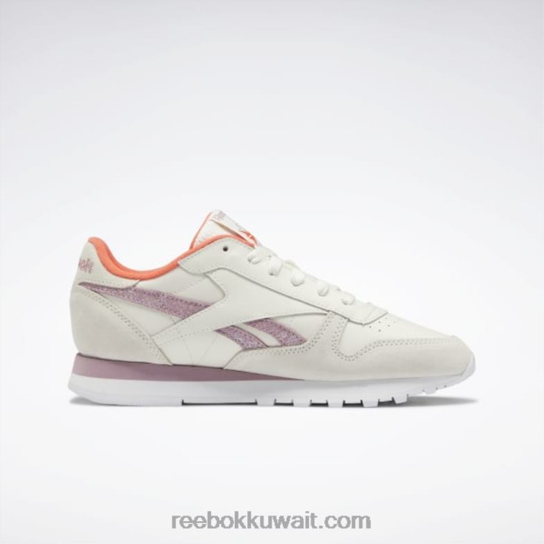 طباشير / أرجواني منقوع / أبيض قدم أحذية نسائية جلدية كلاسيكية Reebok 0NZ0F81